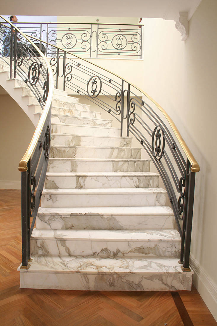 Escada em mármore Calacata Oro Polido