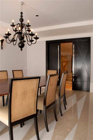 Piso em Mármore Crema Marfil Polido com detalhe em Mármore Nero Marquina Polido