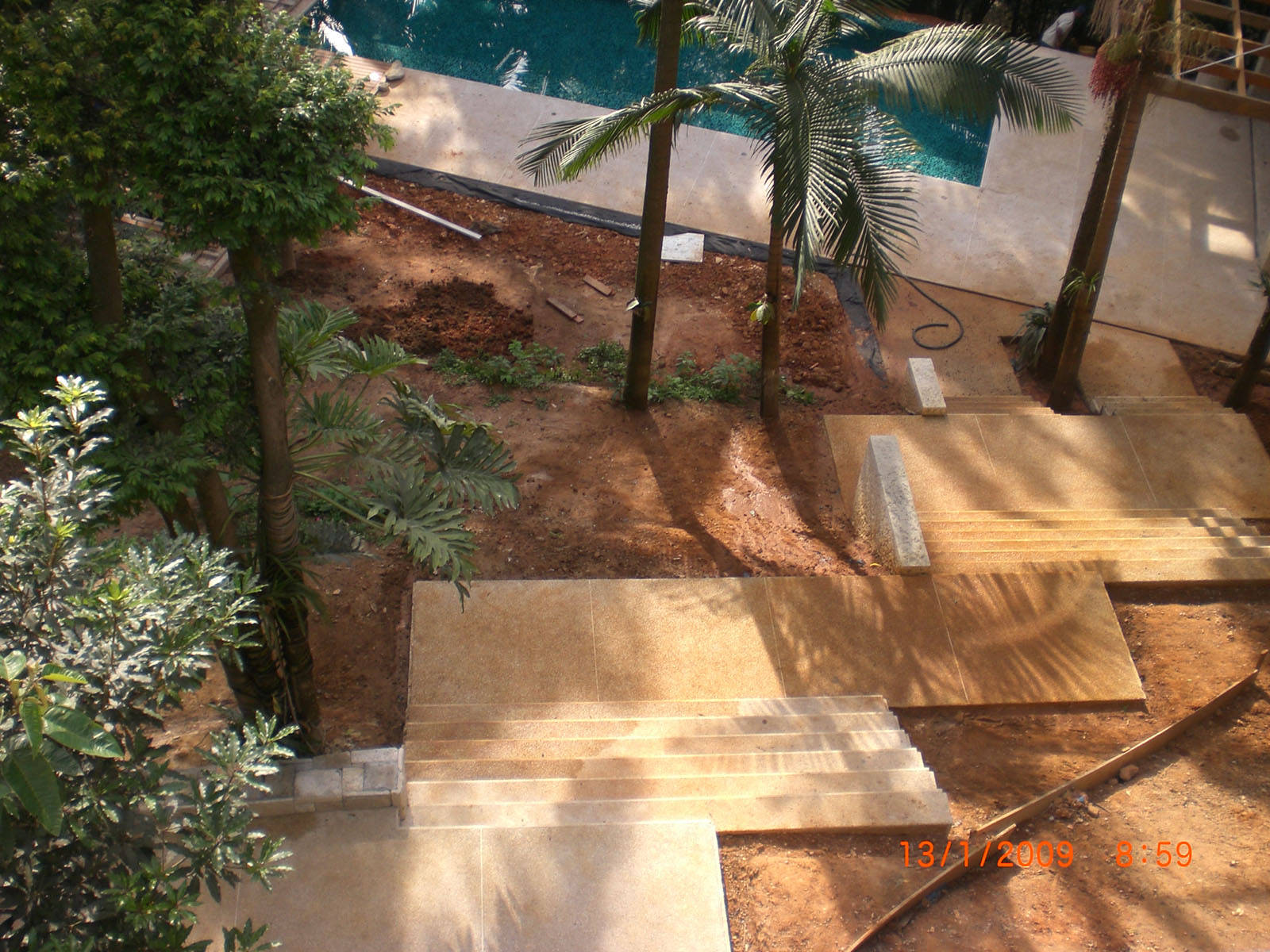 Área de jardim em Travertino Romano Bruto