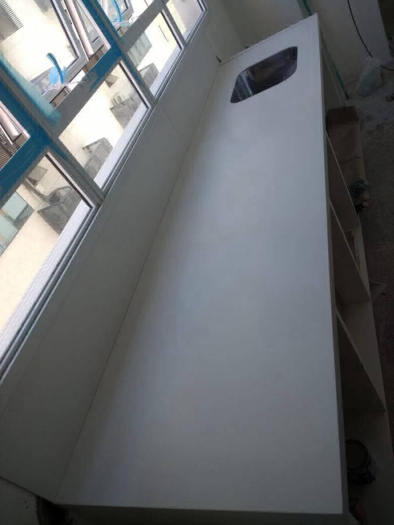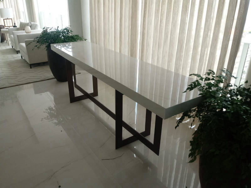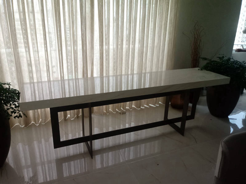 Bancada em Mármore Carrara Polido com detalhe de cuba esculpida