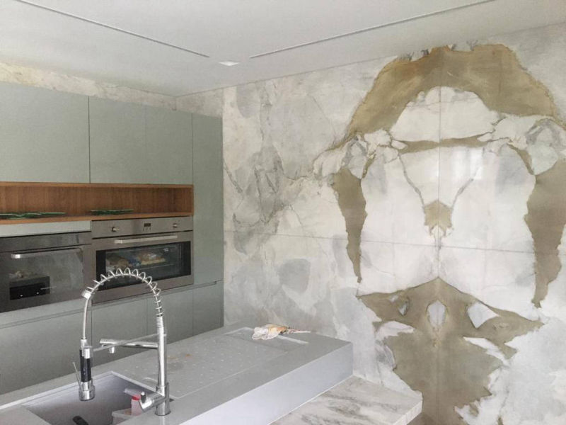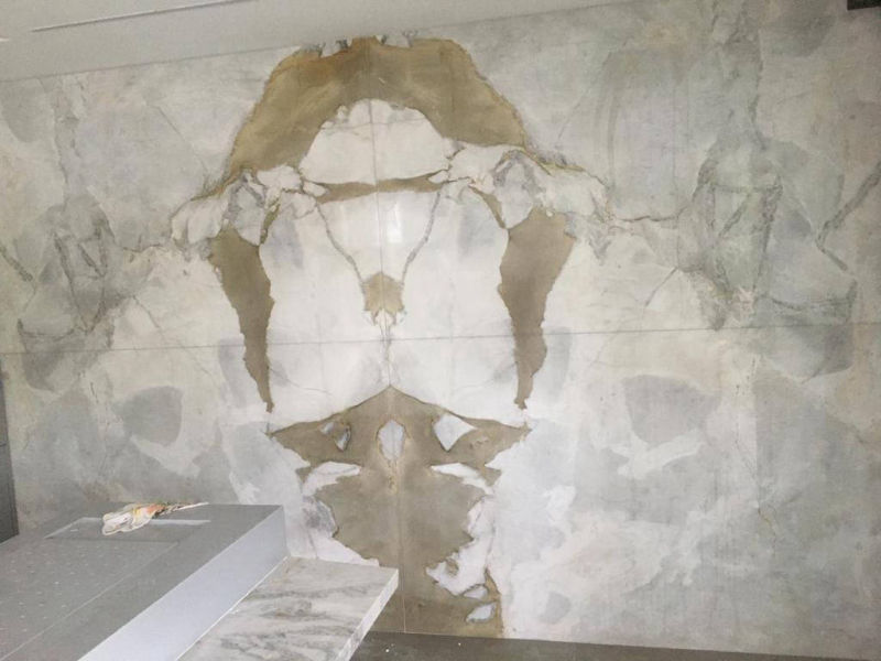 Piso em Mármore Calacata Oro em livro aberto